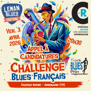 Léman Blues, Château Rouge et France Blues s’associent pour l’organisation du 12ème Challenge Blues Français avec le soutien de l’European Blues Union et de la Blues Foundation.